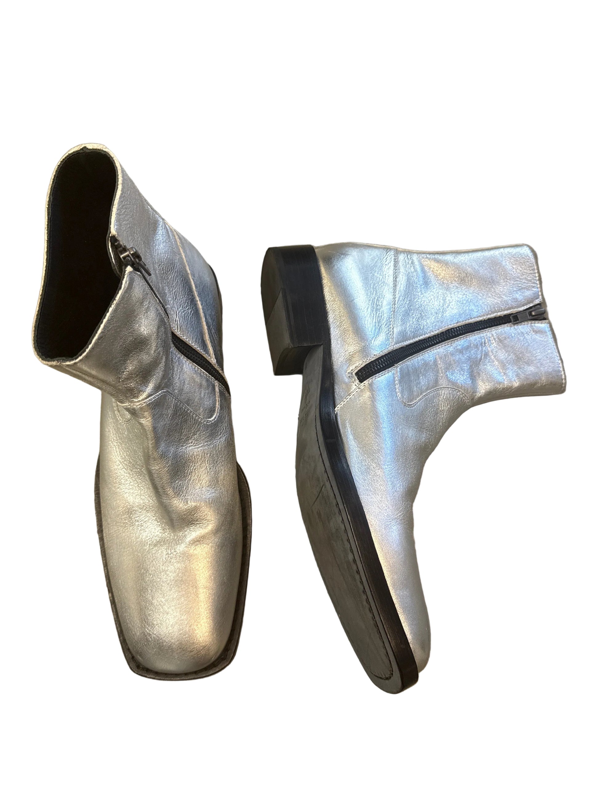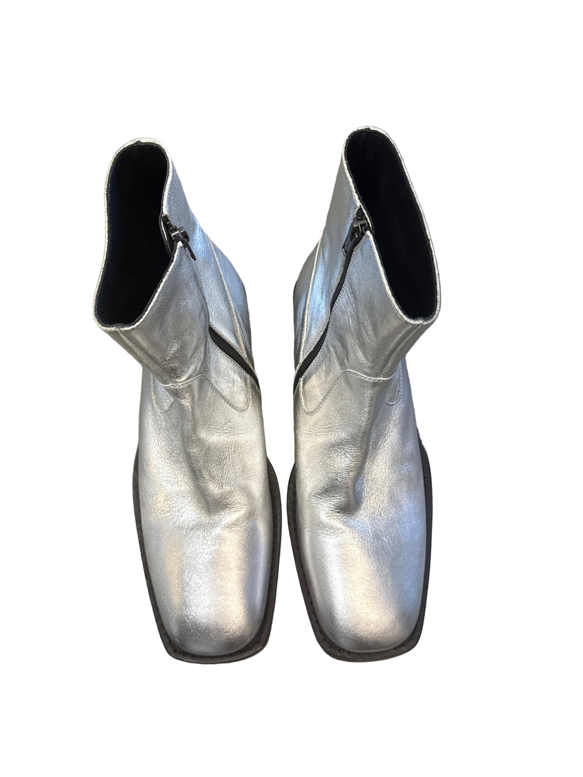 Silver leather ankle boots by Ann Demeulemeester in size 44. Shoes are new and never worn.